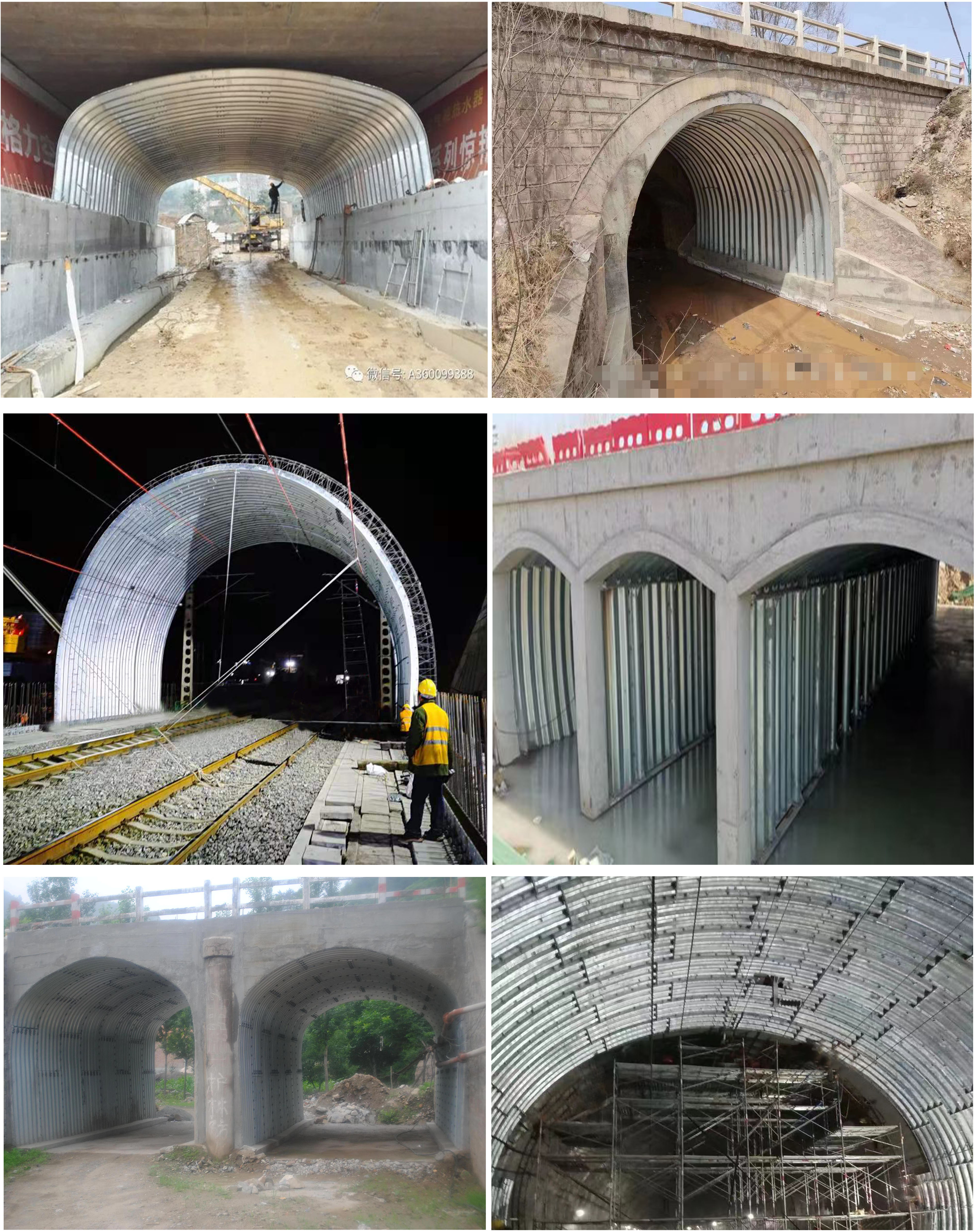 波紋鋼板根據(jù)自身剛?cè)岵?jì)特點(diǎn)主要應(yīng)用于暗渠、隧道、涵洞加固領(lǐng)域。
