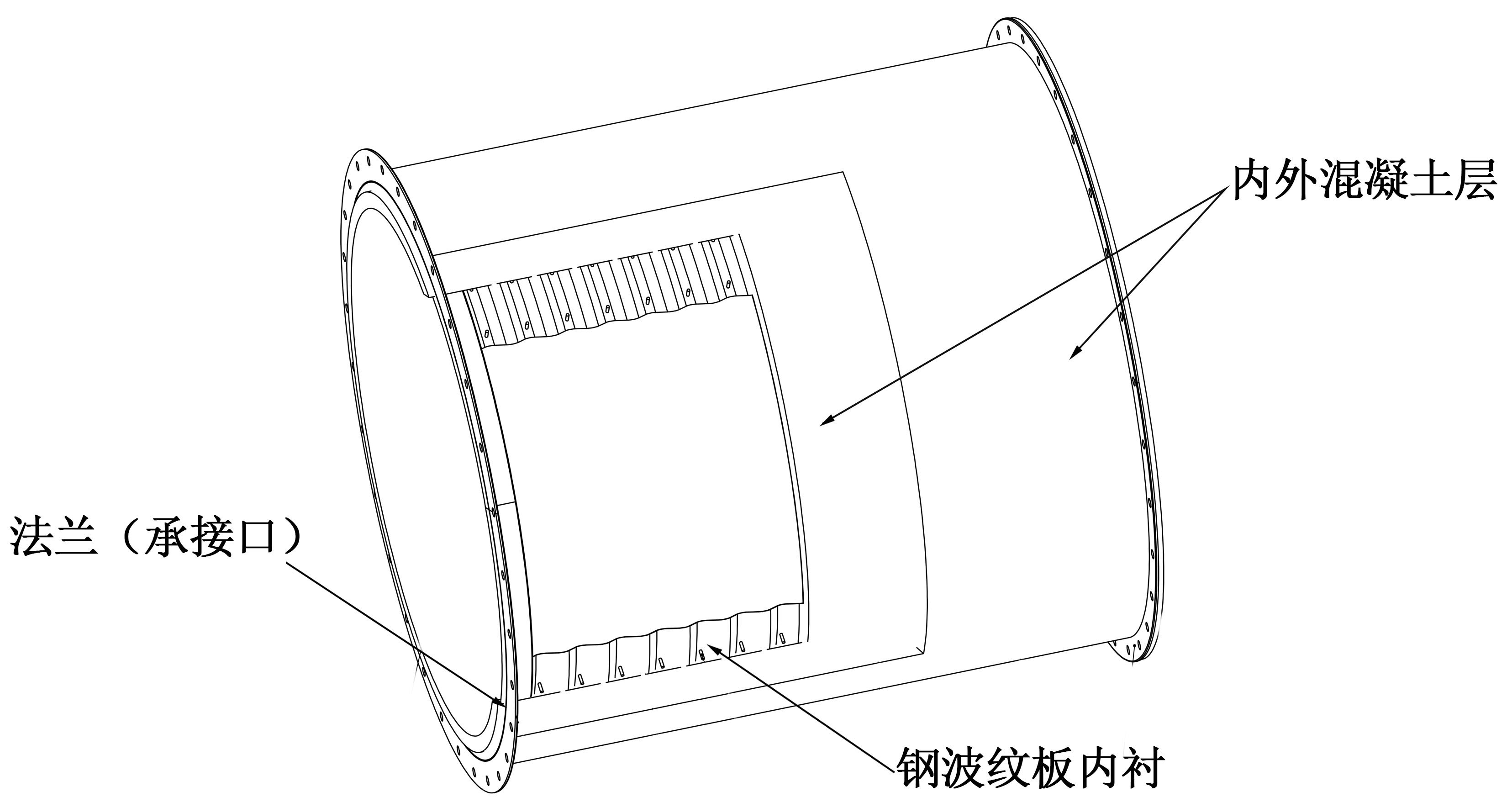 2、采用鋼波紋板作為內(nèi)襯構(gòu)成鋼波紋管目的為鋼波紋管剛性強度高,管道結(jié)構(gòu)受力合理,有一定的抗變形能力,并且具有橫向位移補償能力,對鋼波紋板混凝土復合管構(gòu)成的管道形成雙層保護作用。